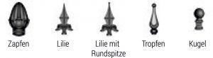 Die Torpfosten (Ø 10 x 10 cm, Länge Zaunhöhe + 50 cm) werden mit Abdeckhaube geliefert. Ein passender Zierzapfen kann auf Wunsch gegen Aufpreis angebracht werden. Anstelle der Pfosten können auch ohne Aufpreis Tormauerplatten (20 x 20 cm) zum Einbau in ein bestehendes Mauerwerk gewählt werden. Die mitgelieferten Schließgarnituren können sowohl links als auch rechts angebracht werden. Standardmäßig sind sie rechts angebracht. Alle Tore können mit entsprechenden Dreh- bzw. Schiebetorantrieben versehen werden.